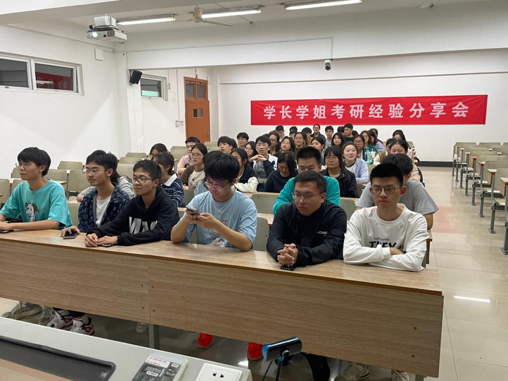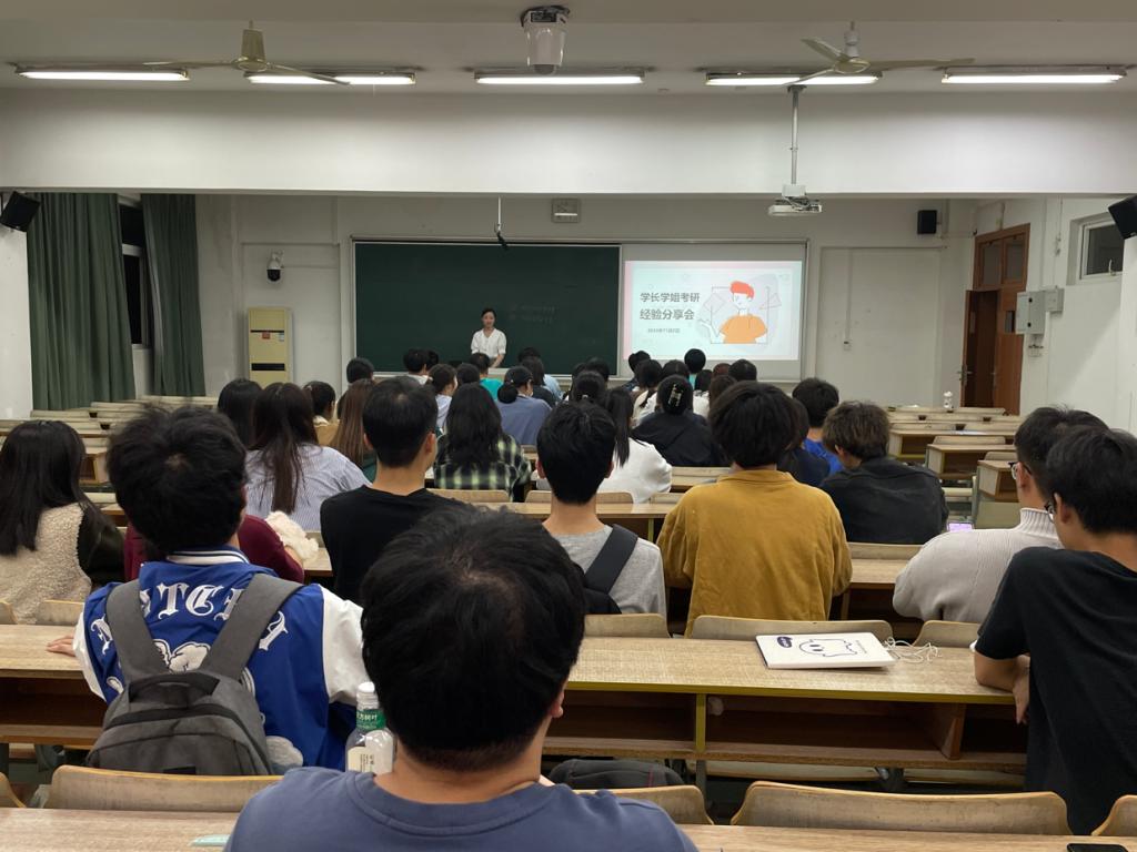 分别在仙林院区博文楼203教室和德业楼111教室以线上线下相结合的方式举办学长学姐考研经验分享会。分享会邀请了刘亚如、黄熊志远、徐鸿、常博宇、张秀花、胡钟仁等5位优秀的学长学姐们为同学作考研经验分享。学院2022级、2021级部分学生参会。